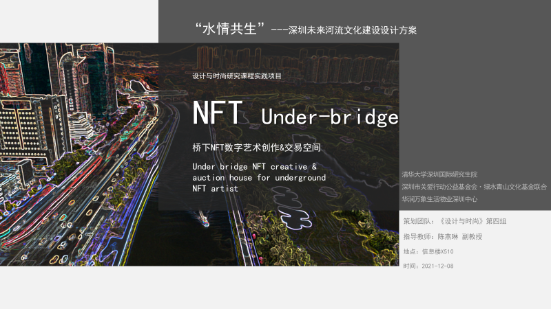 设计与时尚课程目标一方面是让同学们了解设计、艺术及时尚的价值,建立感性与理性相结合的设计艺术思维模式,来认知自我,认知他人,认知世界,另一方面课程一直坚持围绕深圳本土的社会问题,以设计艺术为导向,融合科学技术,探索完善解决深圳本土社会问题的路径,培养学生的洞察力、创造力、表现力、协同力以及表达力等综合能力,因此我们每年都要不同的主题方向,今年课程项目是与深圳关爱协会、深圳水务局和华润万象生活物业深圳中心合作与资助,以“水情共生--深圳未来河流文化建设设计方案”为主题,以深圳河流为研究对象,以大沙河沿岸为案例进行调研与分析,围绕城市河流文化为核心,以可持续发展为理念,以设计创意、艺术视觉与科技智慧相结合为手段,为共建深圳城市未来河流文化体系,重构河流与人与城市共生共融的生态关系,创造未来人类美好生活,提交未来设计方案。