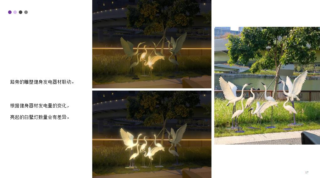 在结课展示会上,各小组从不同维度出发,分别围绕生态保护、人居和谐、水文化科普教育等主题进行探索,最终呈现了6个风格迥异的设计方案。如以深圳特色动植为元素的《桥下活动空间改造方案》、低碳环保的踏步机互动灯光秀方案《点亮大沙河》、桥下NFT数字艺术创作&交易空间《NFT艺术空间》、生态友好型自然科普交互装置《水下浮生》、河流文化介绍地景照明交互装置《浮灯》、以深圳推行儿童友好公园建设的《游光戏影--大沙河桥下空间光影儿童游戏系统》。对此,专家对同学们充满创意的提案展示出了极大的兴趣,对设计理念和可行性与各小组同学进行交流讨论,并最终基于落地性和商业价值提出了建议和意见,并评审出不同的奖项。